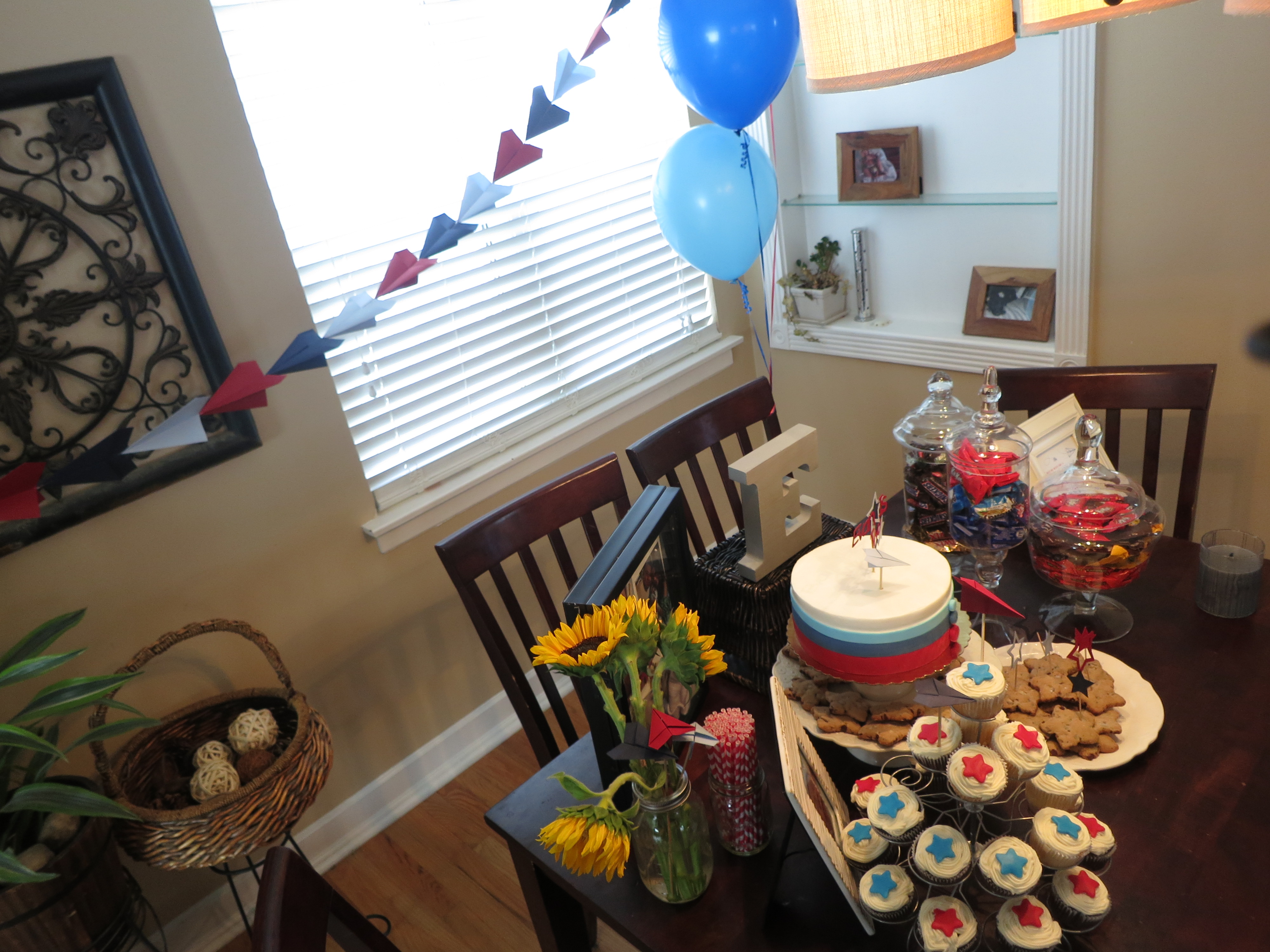 My mom and sister were baking machines and made (with overwhelming love) cookies and cupcakes which I hear were awesome!!  I was able to buy candy and order a cake 😉 – We folded over 200 lil airplanes which I’m still so in love with: